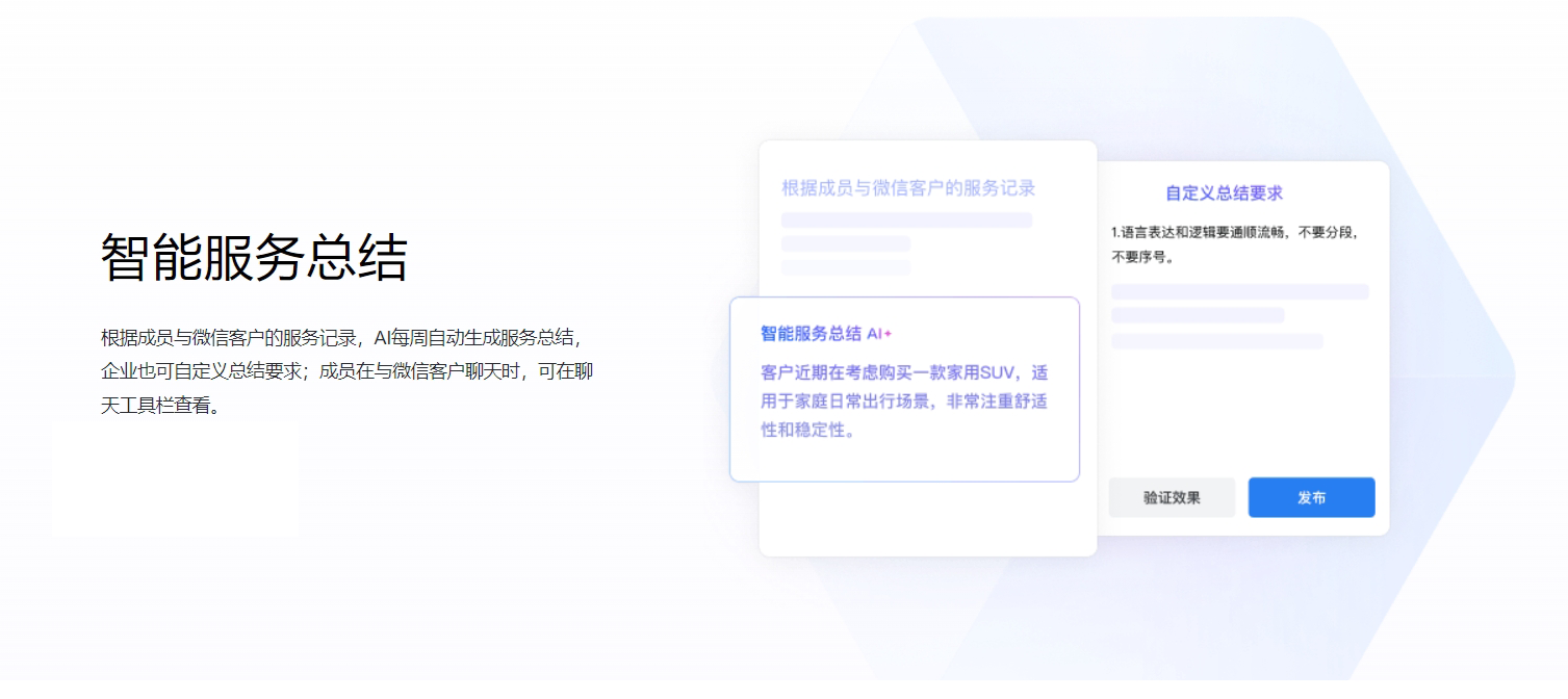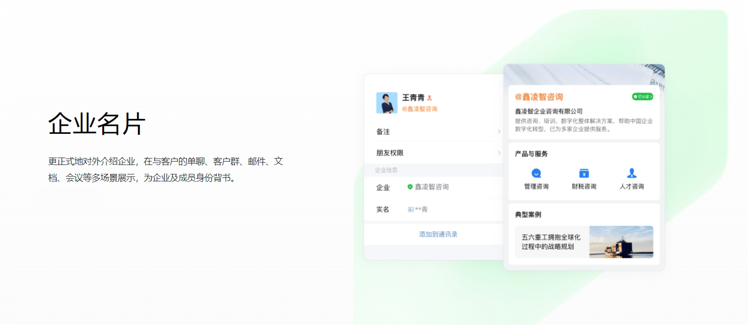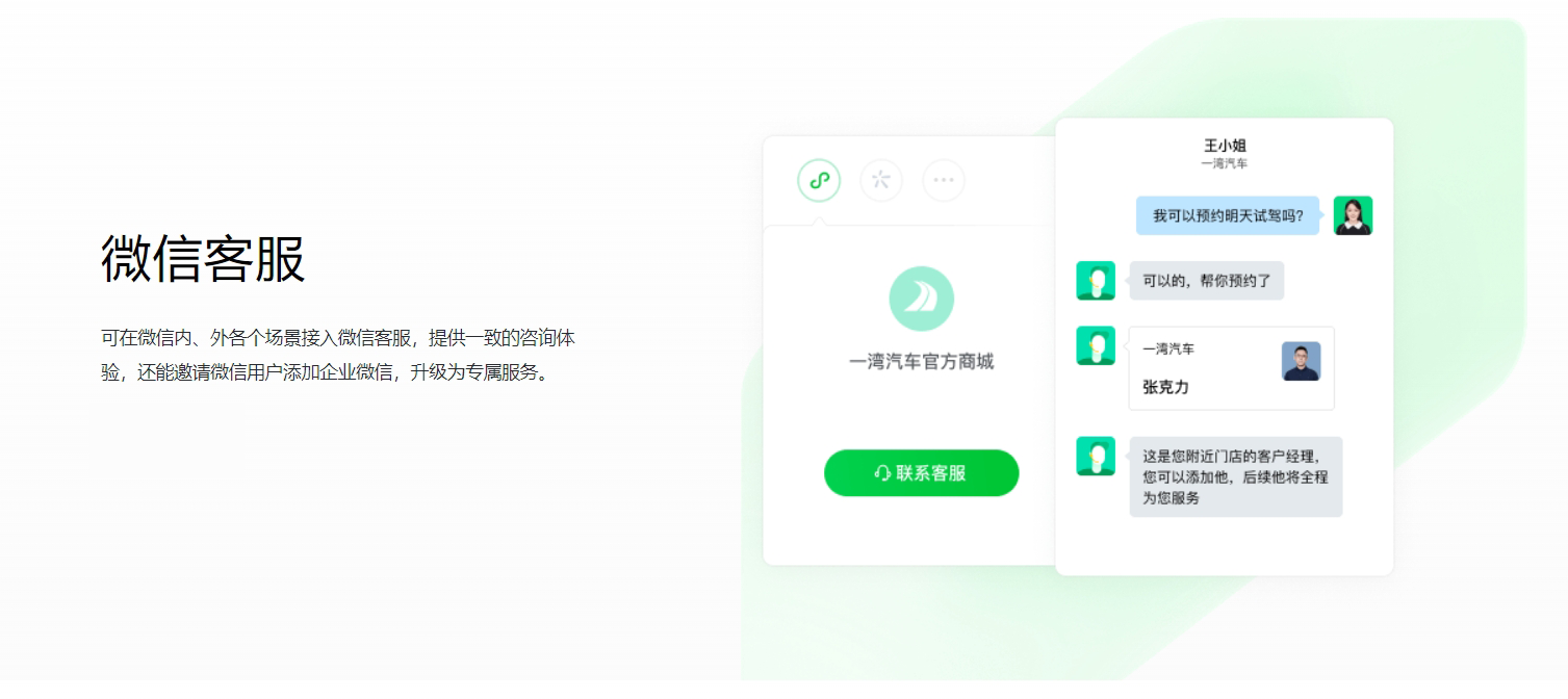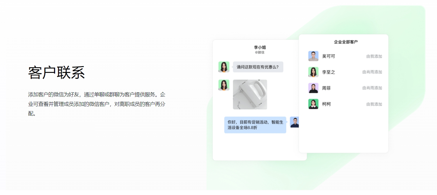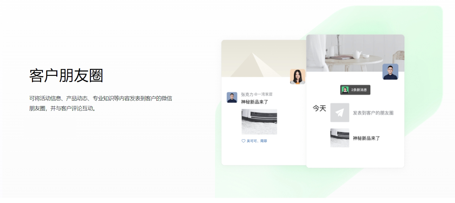 基于与微信的连接, 对客户、客户群、发表的朋友圈信息进行开发, 满足企业更个性化的管理需求。